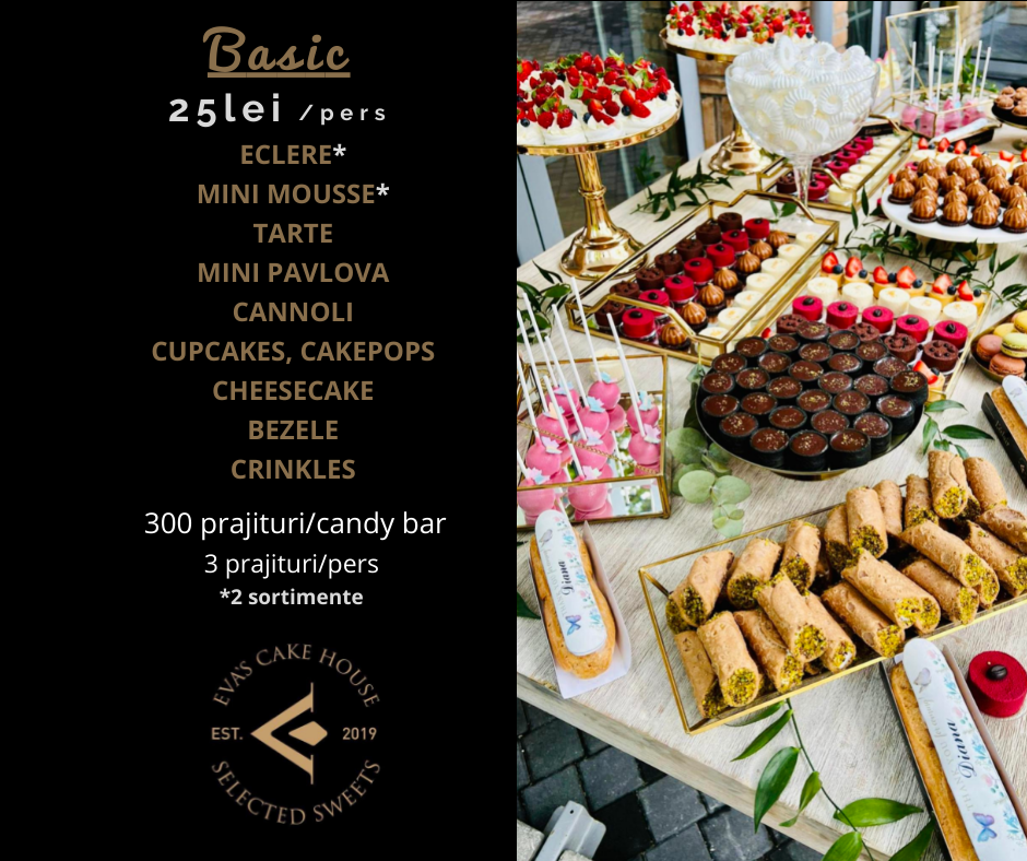 Toate produsele de candybar de la Eva Cake House sunt premium, realizate exclusiv cu ingrediente naturale, de calitate superioara si nu contin premixuri, lapte praf sau praf de ou fiind pregatite speciaI pentru evenimentuI contractat.